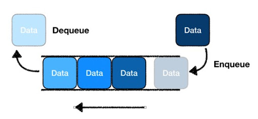 - 한쪽에서는 ENQUEUE 연산을 이용하여 데이터를 넣고, 한쪽에서는 DEQUEUE 연산을 이용하여 데이터를 꺼낸다.