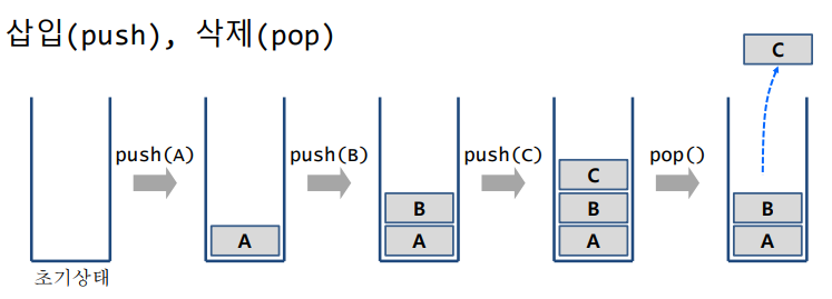 | POP | 스택에서 가장 위에 있는 데이터를 하나씩 꺼내는 연산 |