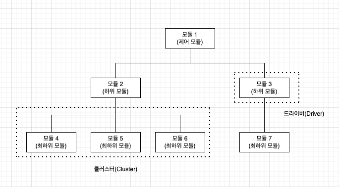 - 메인 제어 모듈에 통합되는 하위 모듈과 최하위 모듈은 '깊이-우선' 또는 '너비-우선' 방식으로 통합된다.