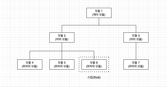 | 3단계 | 모듈 및 모든 하위 컴포넌트를 대신하여 더미 모듈인 스텁 개발 |