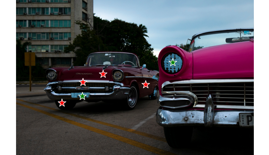 초록색 별은 세그멘테이션을 할 부분을 나타내며, 빨간색 별은 세그멘테이션을 하지 않을 부분을 의미한다.